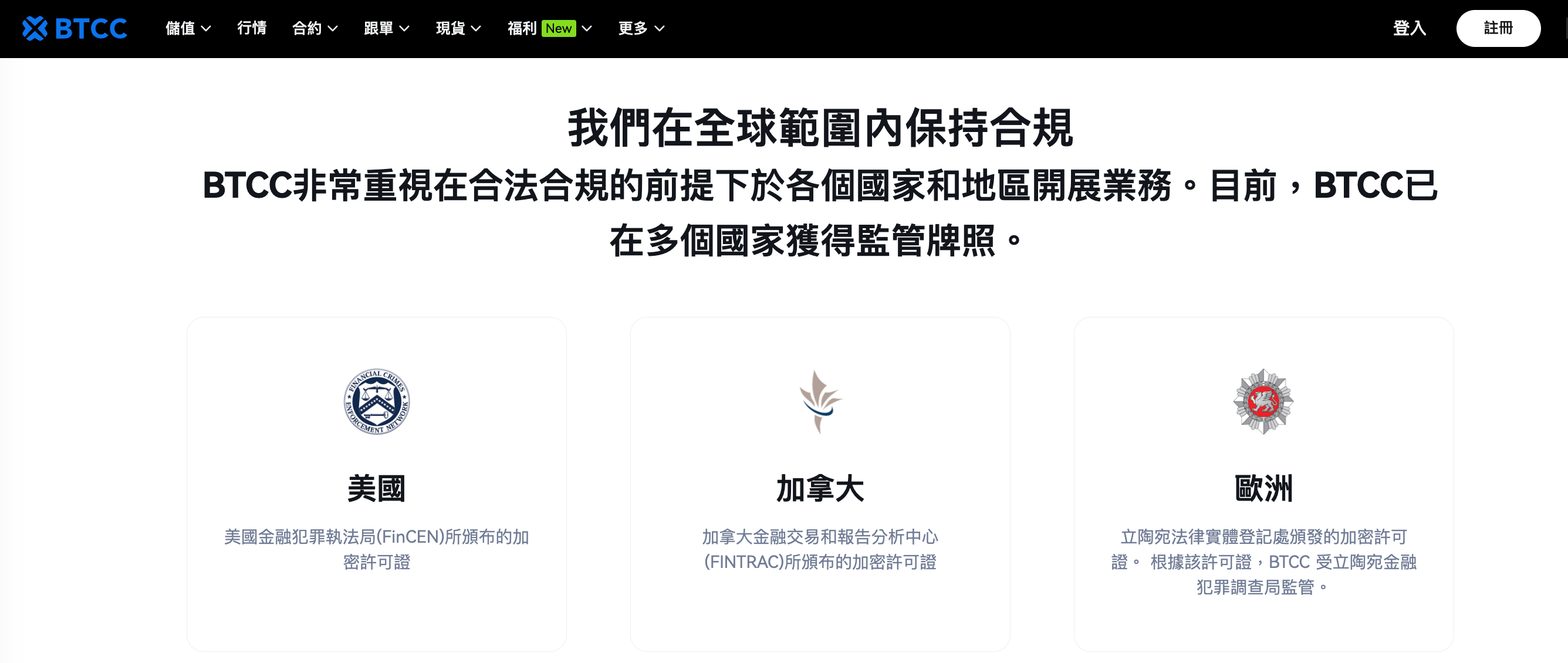 BTCC 目前持有以下監管機構的合規牌照: