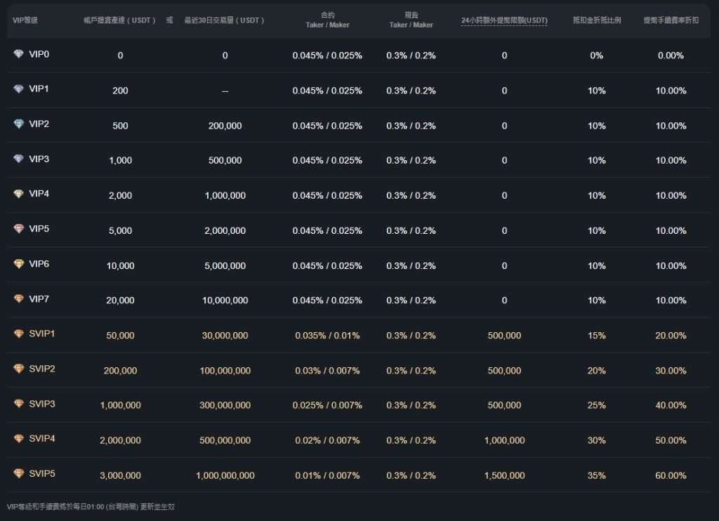 如果你對合約交易有興趣,BTCC 的合約手續費也確實站得上檯面,普通用戶基礎費率是 Maker 0.025%/Taker 0.045%。