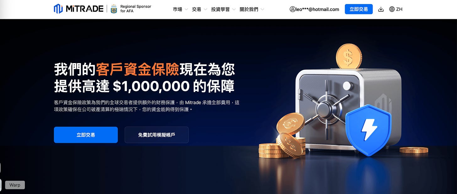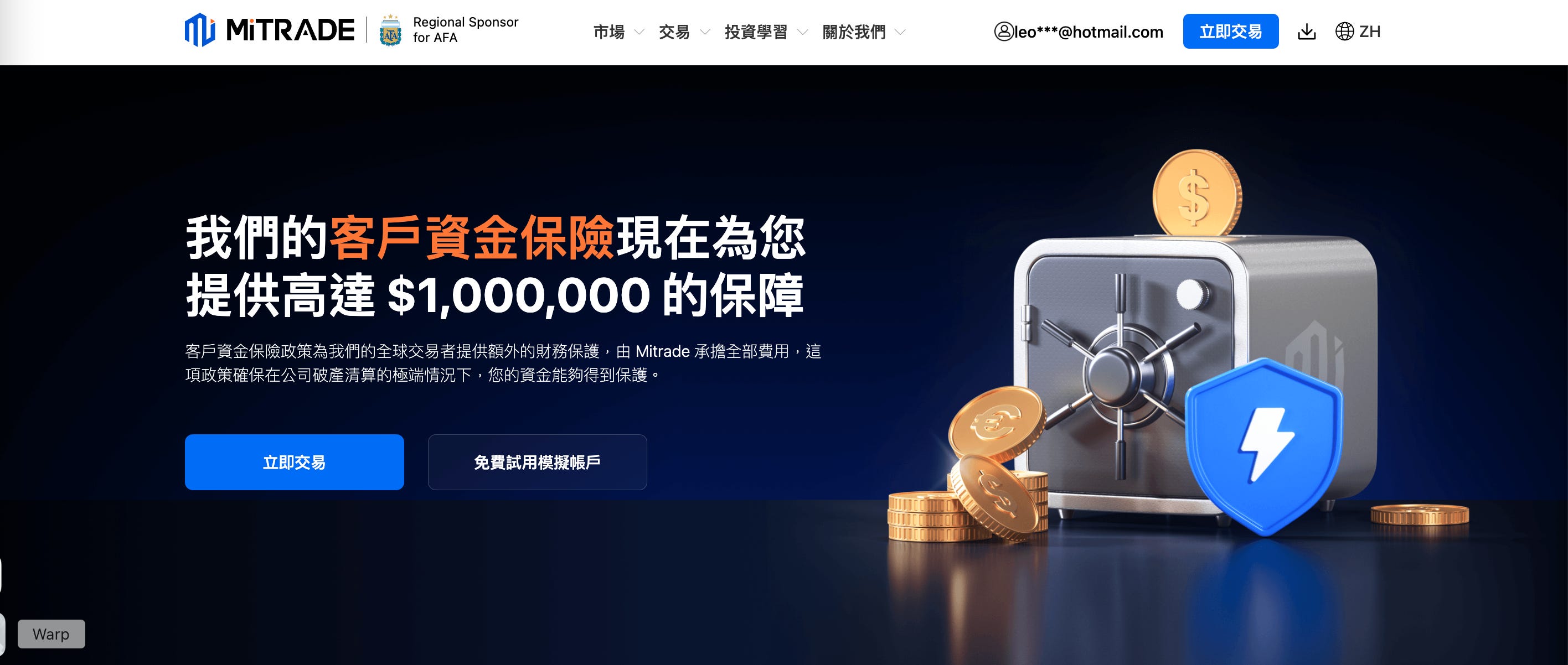 Mitrade為所有客戶提供 100 萬美元安保政策,保障資金安全