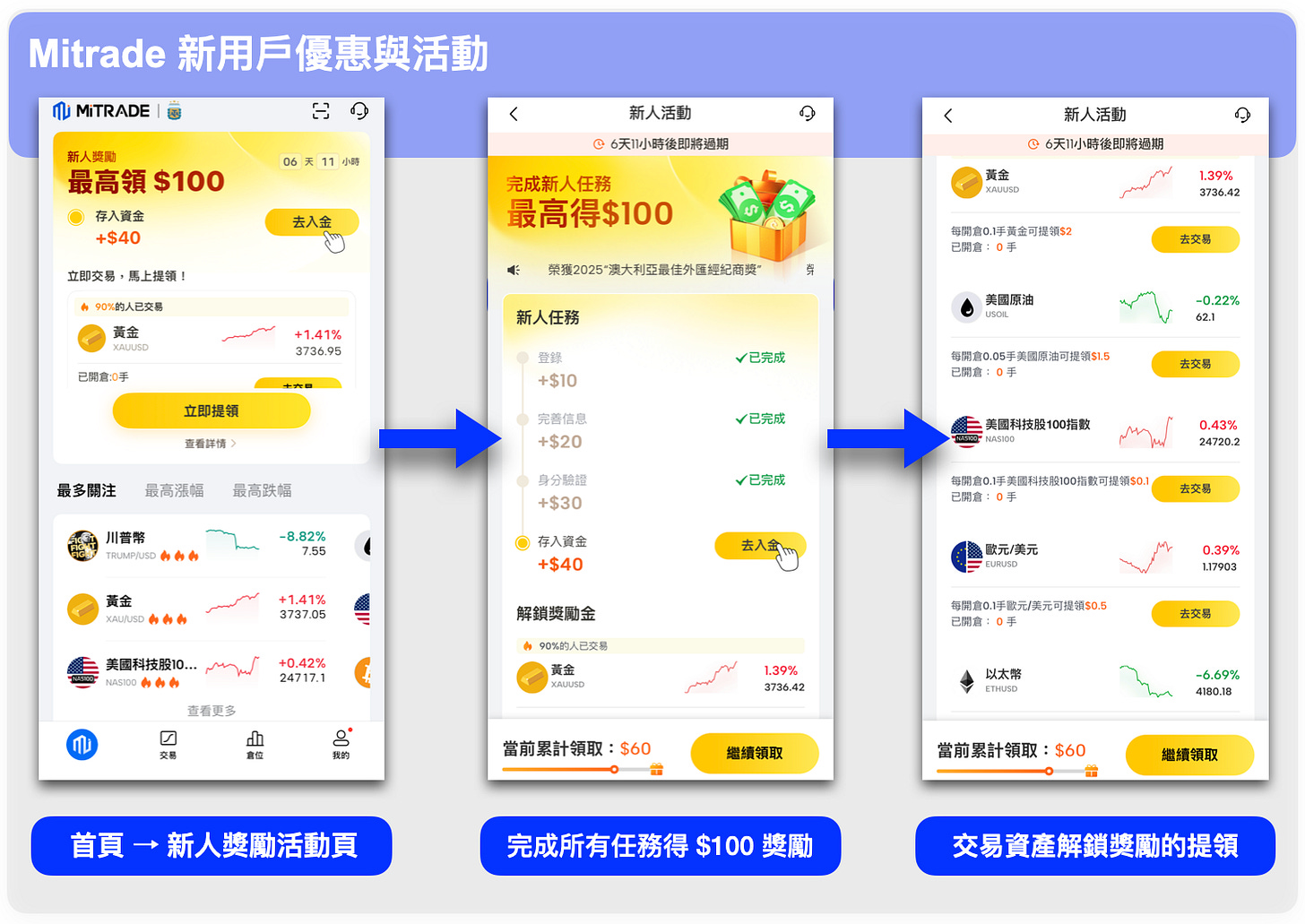 使用創作者經濟 IMO 的 Mitrade 專屬連結註冊,並參與文末新用戶優惠與活動。為了歡迎新手用戶,Mitrade 推出了限時的新戶專屬獎勵。