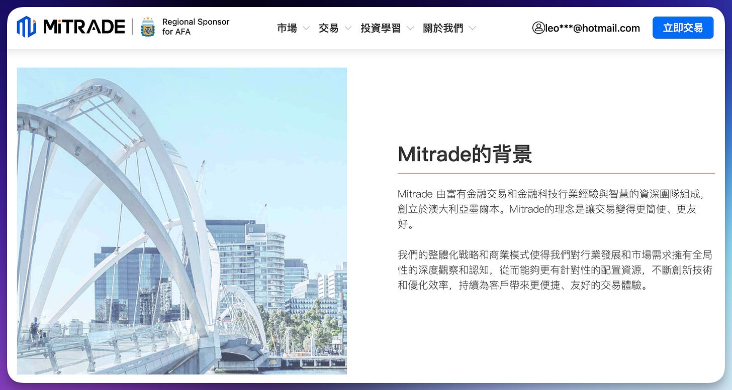 Mitrade 是一家正規、受嚴格監管的國際線上交易券商,專注於為全球投資人提供多元化的金融市場投資服務。