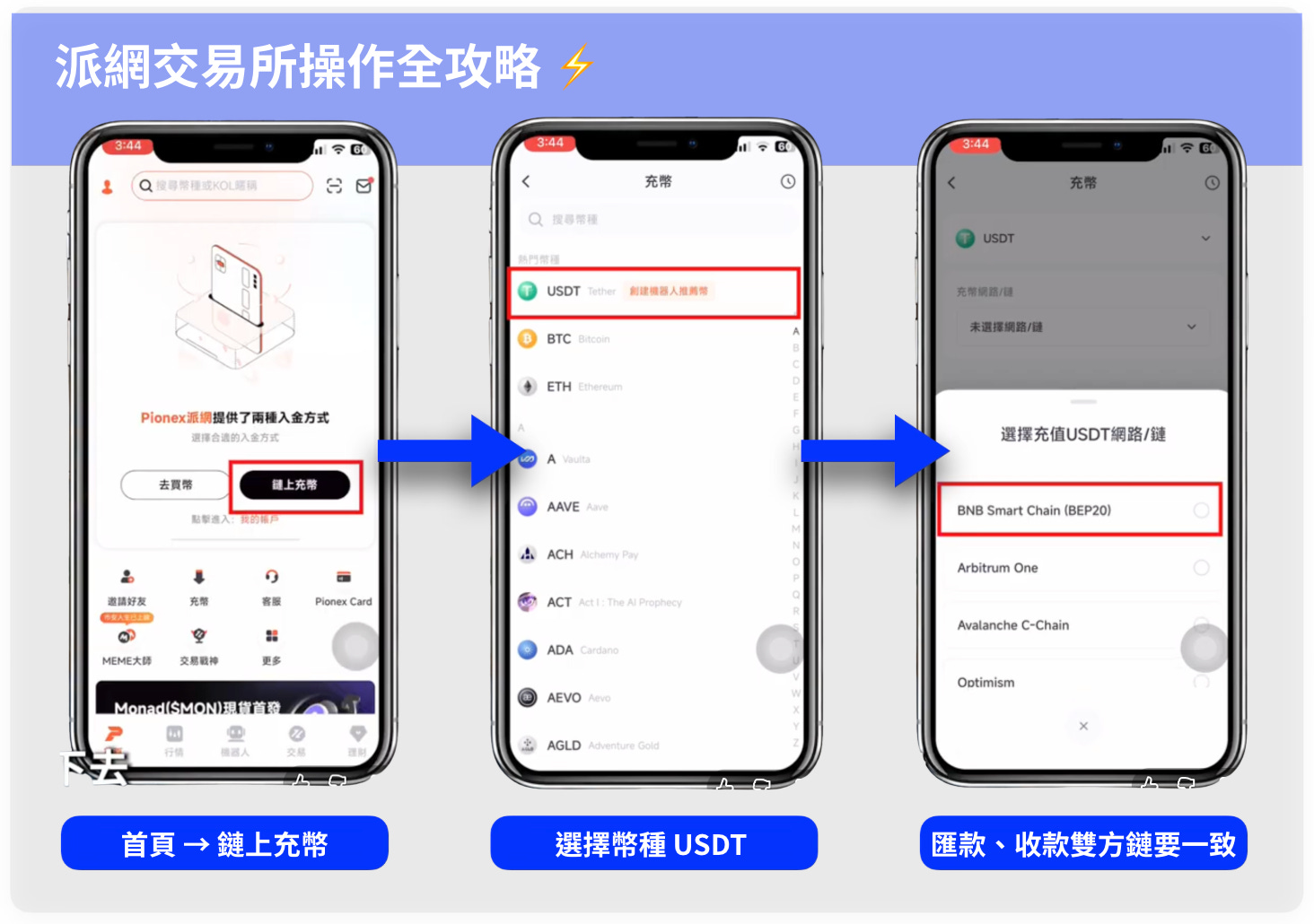 路徑:先在本土交易所(例如 BitoPro、HOYA BIT、MAX)用台幣買 USDT → 再轉到派網。