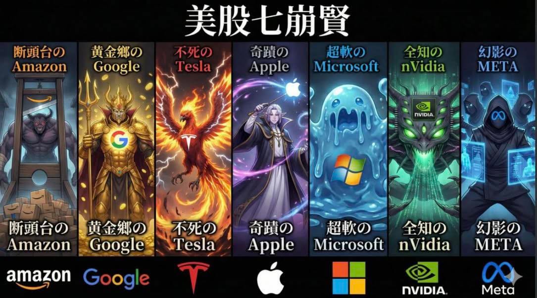 葬送的比特幣說:美股七崩賢——斷頭台的亞馬遜、黃金鄉的谷歌、不死的特斯拉、奇蹟的蘋果、腐敗賢者微軟、全知的輝達、終末的 Meta。