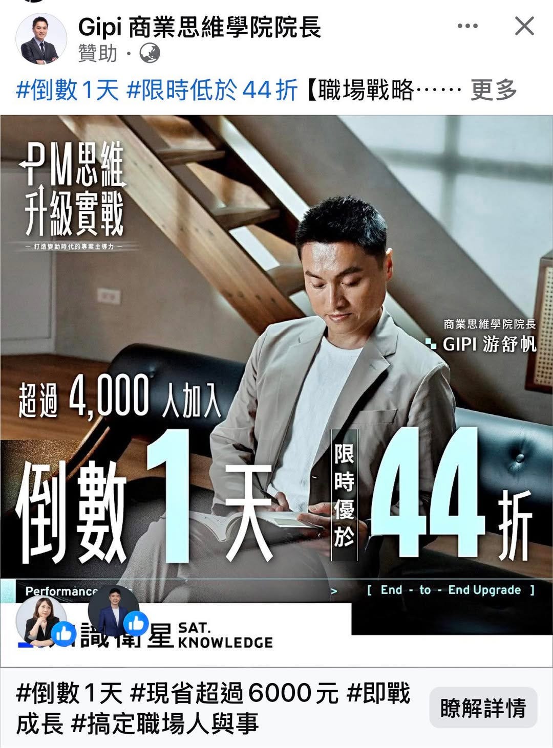 3)「商業思維學院院長 GIPI 游舒帆」絕大多數品牌常煩的錯誤,就是在「再行銷」的素材製作上,還是喜歡把 2)跟 3)放很大,然後 1)不知道在害怕什麼