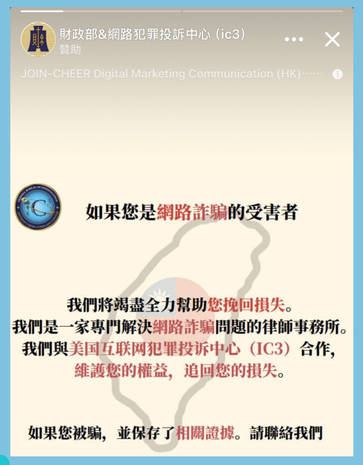 你越急、越想追回錢,就越容易落入「二次詐騙」的陷阱。像是有些平台自稱「政府協助追回詐騙資金」、「區塊鏈專辦律師團隊」等等,實際上根本是另一層詐騙。