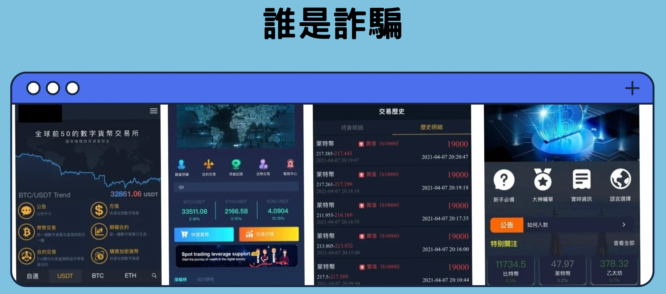 結果答案揭曉——四張通通都是假的!令人驚覺,現在的詐騙網站已經可以把假平台做得幾乎跟真的一模一樣。